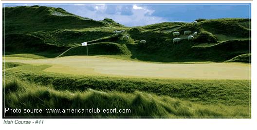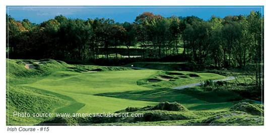 Given the name,” The Irish Course”, this Pete Dye design resembles many courses from Ireland. The trademark hills, dunes, and mounds are everywhere. Pete Dye was extremely generous with the frequency and placement of large and small sand traps throughout the course. Each hole seems to have dozens of traps everywhere you look – way too many traps on the course to begin to count. Keeping with the Ireland feel the greens are large, undulating, and fast. Even the clubhouse is built to look like an old country farmhouse in the Irish countryside. The Irish course at Whistling Straits was ranked #35 in Golf Digest’s ranking of America’s 100 Greatest Public Golf Courses for 2011/2012. In 2005 The Irish course was the site of the Palmer Cup.