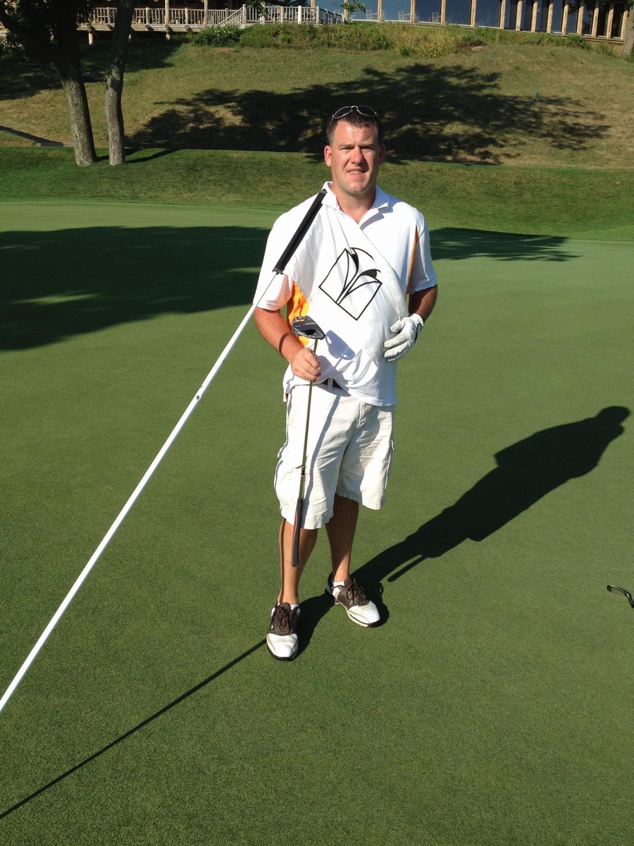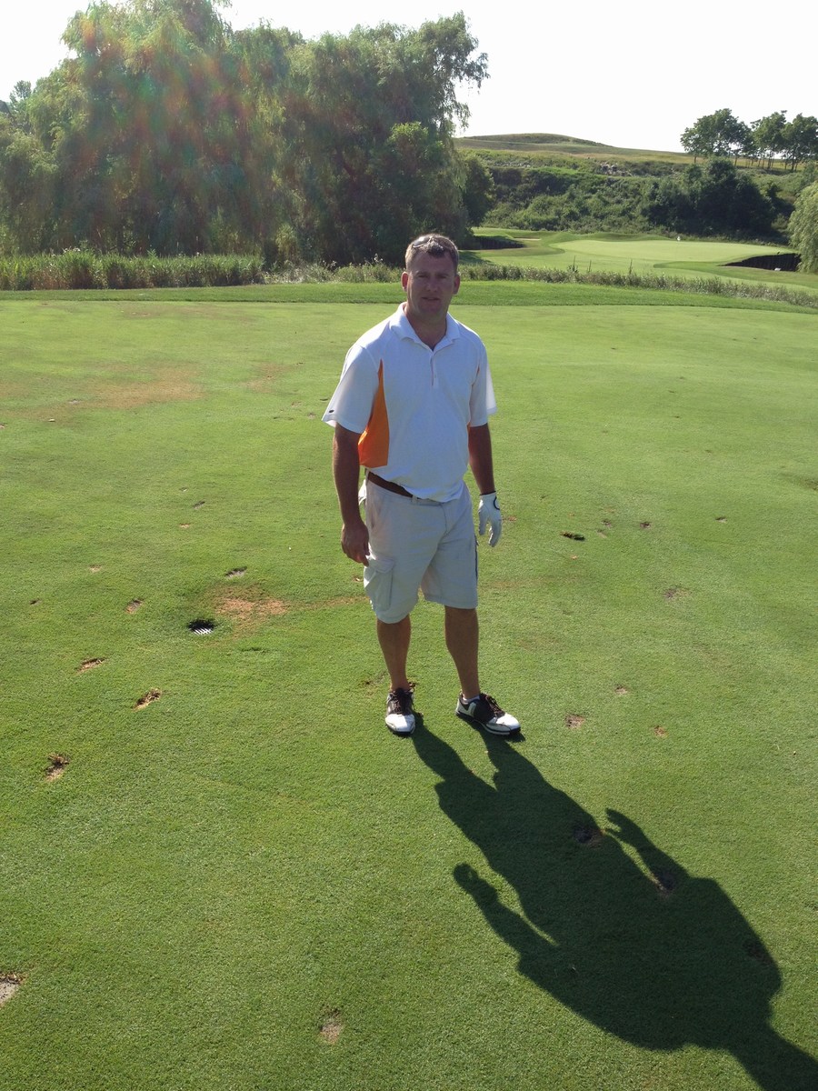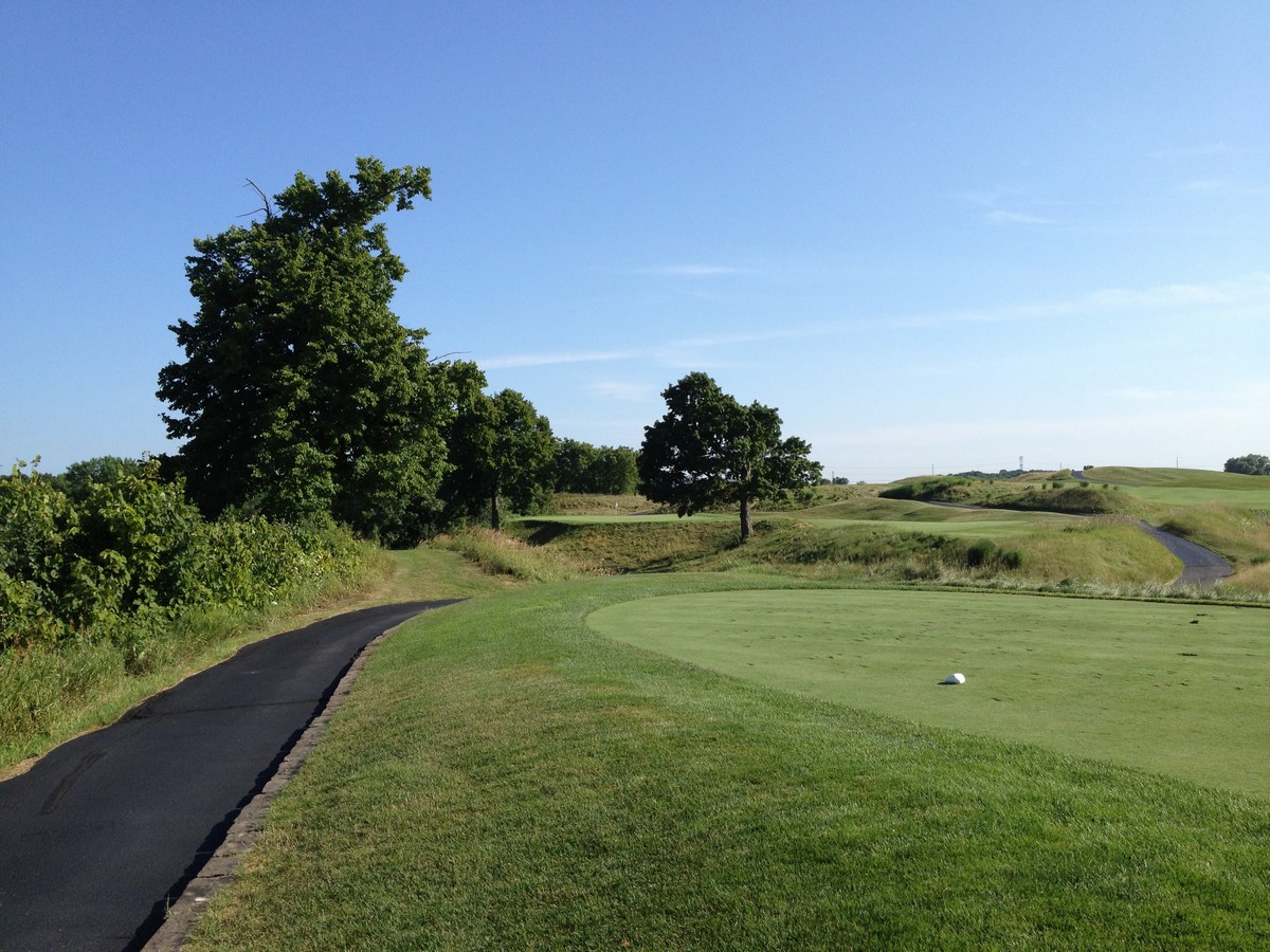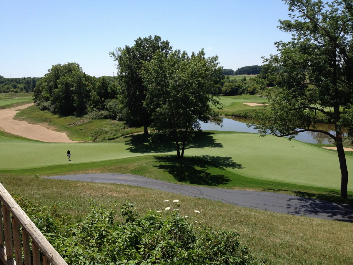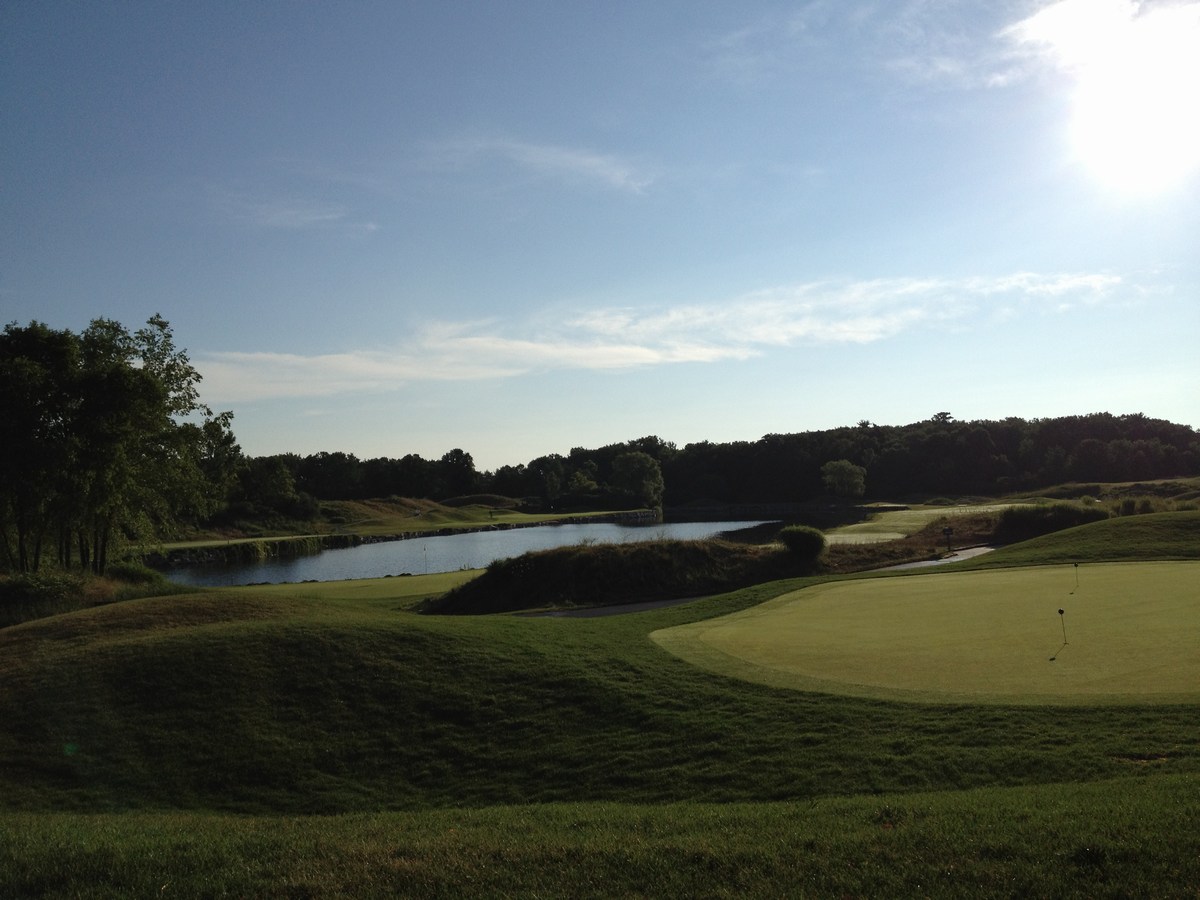 During the break between rounds of golf we had the opportunity to get lunch at the Blackwolf Run restaurant. Sitting outside on the patio we ate gourmet sandwiches while enjoying a panoramic view of the golf course and the combined massive 18th hole green. While eating and relaxing I could not help but wonder what the people were thinking about my 100 foot putt attempt from a few minutes ago. Again the service and food was without flaws.