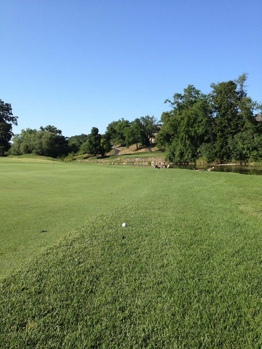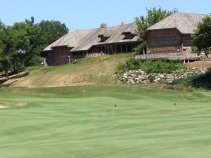 The Meadow Valleys course took us away from the Sheboygan River, but not away from the glacier valleys and rising moraines. We were able to spray the ball a little more on this course, but there is still a need to play in control to salvage any kind of score. Traveling too far out of the fairway will land golfers in the meadows with either a lost ball or a wedge back to the short stuff. I lost count of the number of greens that were elevated; they were wonderfully challenging and scenic. If any shots were slightly off target the ball would roll and roll away. The championship tees on this course run 7,250 yards with a 75.1 rating and a 145 slope. Just like the River course, the Meadow Valleys course has 5 separate tee boxes to allow golfers to play the course according to their individual skill levels. For our afternoon round on the Meadows Jim and I played the Green tees which have a 71.5 rating and slope of 136. For this round we were joined by Brenen who is from Texas, but while on business in Wisconsin had to give Blackwolf Run and Straits a try. While golfing with Brenen he explained to me how his wife founded and runs the Ten Doves Charity to help children in dire need and they use a golf instructional book called Precise Golfer (authored by Brian Morris, Sr.) to help promote the charity. Check out http://www.precisegolfer.org/ for more information Even though the course worked its way around the meadows it seemed that we were always alone and had the whole place to ourselves. No holes were back to back and each one seemed to be its own unique challenge. Holes 13, 14, and 15 were really enjoyable to me. “Chimney” (#13) contains a huge valley of waste area about 100 yards short of the extremely elevated green. A good drive and even a better wedge together in combination are needed to even think about getting a par. “Nature’s Course” (#14) has a dogleg right and a big drive setups up a 140 yard shot down to the green (that is wrapped by a large creek). I loved the clever use of a flatbed railroad car as the bridge crossing the creek. “Mercy” (#15) is a shorter par 3 that requires a player to hit the green or be lost in the 50-75 foot waste area valley. All three from our group had beautiful tee shots; with my 8 iron shot landing really close to the pin, but was not visible from the tee box. After driving to the green and initially seeing only 2 of the 3 golf balls on the dance floor my mind was getting excited. Could I be living the dream with an Ace? Nope, it was 6 feet away, a good shot, but not the dream shot. The last hole, “Salmon Trap” is a wonderful finishing hole. A great drive sets up a forced 135 yard carry over the wide and arching Sheboygan River; here there is no room to hit a second shot short. As mentioned earlier, hole 18 on both the Blackwolf Run courses share a gigantic green that is overlooked by the mammoth log cabin styled clubhouse. Lucky this time my approach shot was closer to the correct pin. My desire / goal / dream of scoring in the 80s was met on this course, but it took a lot of work.