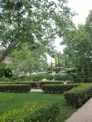 Later we strolled to the library building for a complimentary wine and cheese reception, there we chatted with our newfound bicycle friends on a shaded patio festooned with glorious blooming flowers. Dinner that evening was at Saddles Steakhouse, located right on the grounds of MacArthur Place. Whimsical saddles are lined up and ready to mount in the lobby for adventurous guests enjoying a pre-dinner cocktail. Smoky seared filets with roasted shallots and wild mushrooms (who doesn’t love mushrooms!) paired with garlic mashed potatoes and market vegetables tantalized our taste buds.