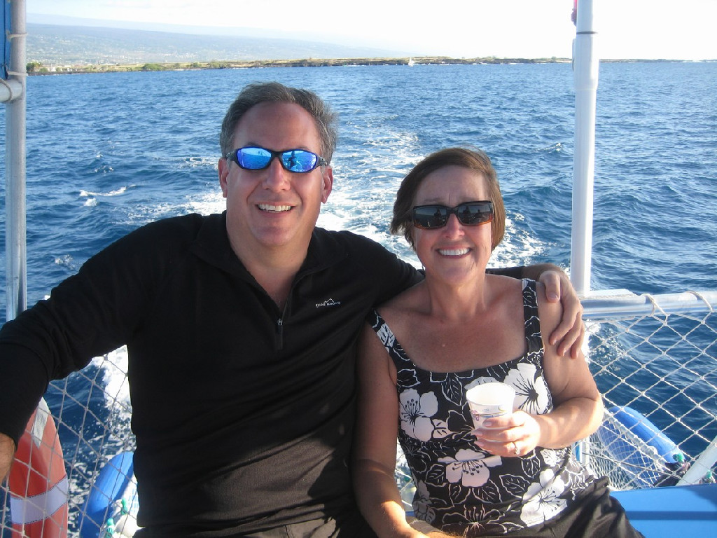 An hour after sunset, I stood at the edge of the dive-boat and peered a bit apprehensively downward into the inky black water of the Pacific.  My wife and I along with dive-master Katie of the Kona Diving Company were clad and festooned with all the needed accouterments for a scuba dive into the darkness.   Wet suits, lead weights, air tanks, and regulators were all strapped to us seemingly like chains and concrete on a Mafioso informant.  But this was no execution; this was high adventure and we were excited to begin.