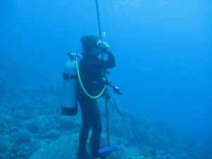 One by one we stepped off the boat into the Pacific using the scuba giant-stride technique trading the star filled Hawaiian sky for the magical world of the dark ocean.  Each of us had a hand held dive-light securely lanyarded to our wrist and also an orange tag-light on our tank.  We descended according to our dive plan down the boat’s mooring line to the ocean floor.  Cautiously proceeding deeper and deeper to ensure proper equalization of the air spaces in our ears and masks we arrived at 40-feet without incident but with a heightened anticipation.