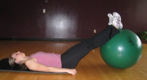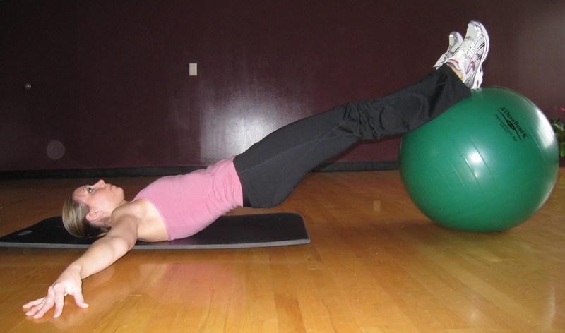 · Place ankles on top of the physioball and raise your hips off the floor.