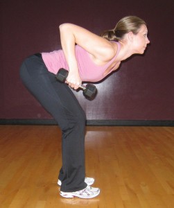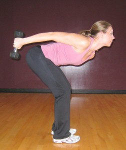 · Stand with feet shoulder width apart and bend your back forward to a 90-degree angle; your back should be parallel with the floor.