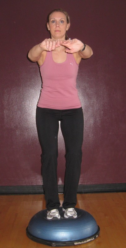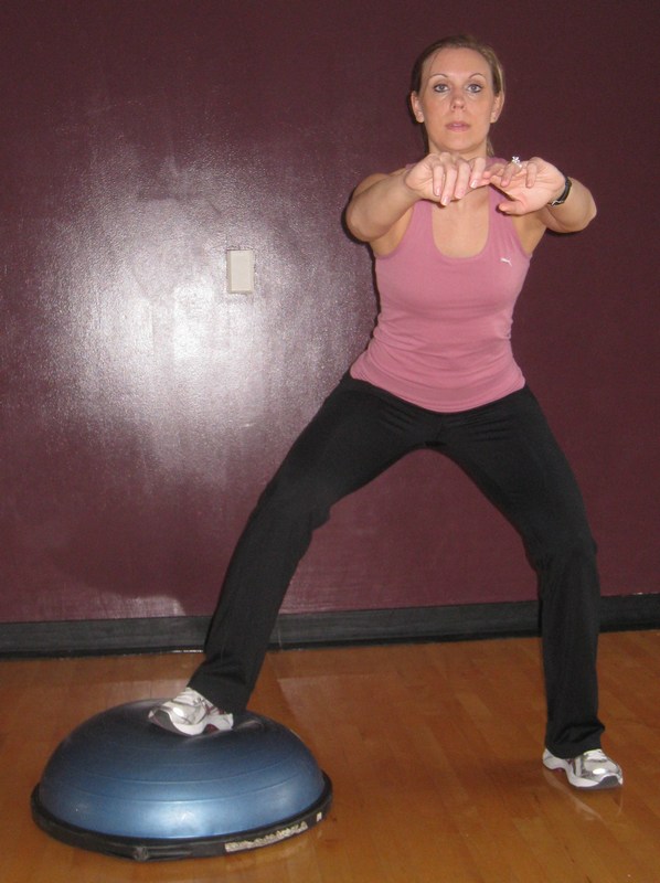 · Place bosu blue side up and begin a stopwatch for 60 seconds.