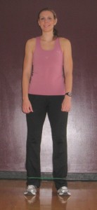 · Stand with your feet shoulder width apart; tighten your abs and glutes with a slight bend in the knees.