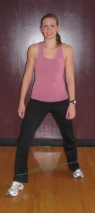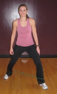 · Choose an exercise ring that is challenging for you and place around ankles.