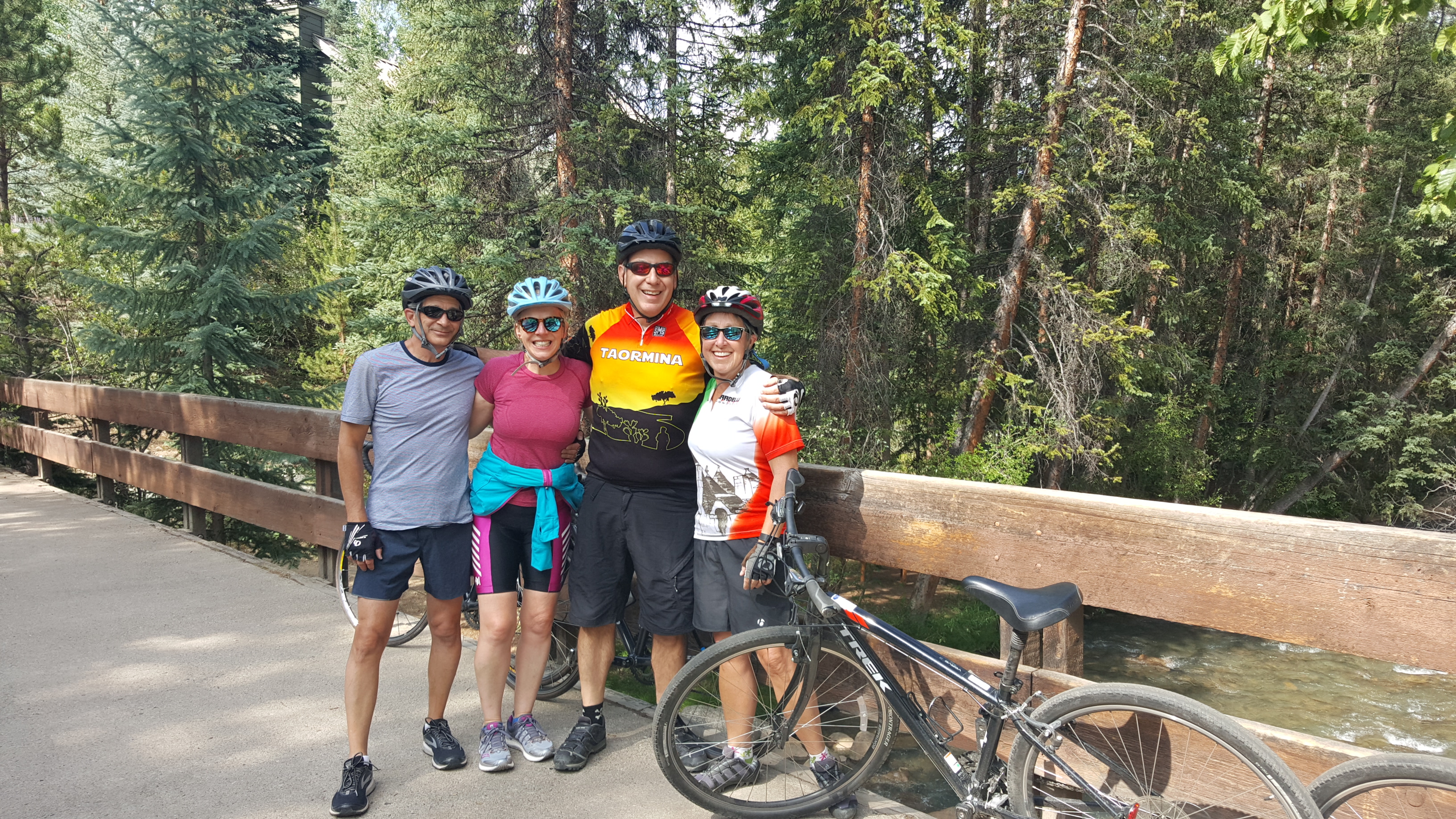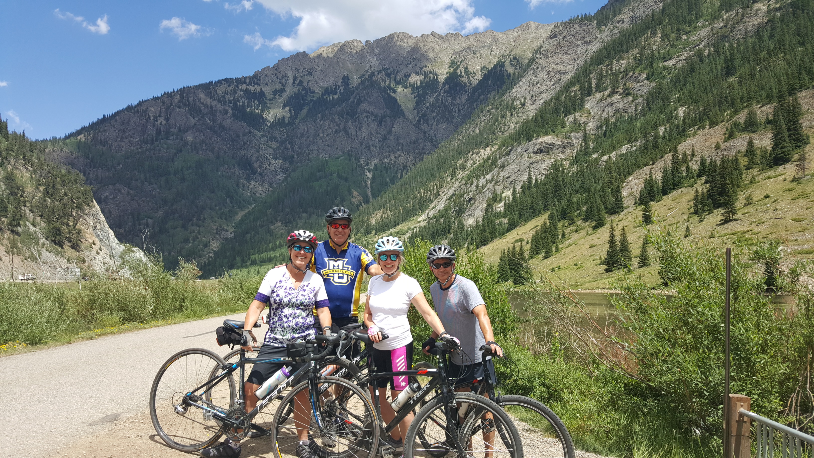 The ride from Dillon to Keystone is Amy’s favorite route. It starts by following the Recpath south-westout of Dillon on the west side of the reservoir, remembering to keep the lake on the right. The first couple miles hug the shoreline giving riders a great view of the lake with the dam in the distance. This stretch has some curvy ups-and-downs which are fun and generally not too taxing. This year we were lucky to have another couple (Harry & Sandy) join us in Summit County. Although the elevation changes on this stretch are really not very severe, it’s good to remember that the lake sits at an elevation of about 9,200 feet. There is an extra consideration for exercise at high elevation, everything is tougher with less air!