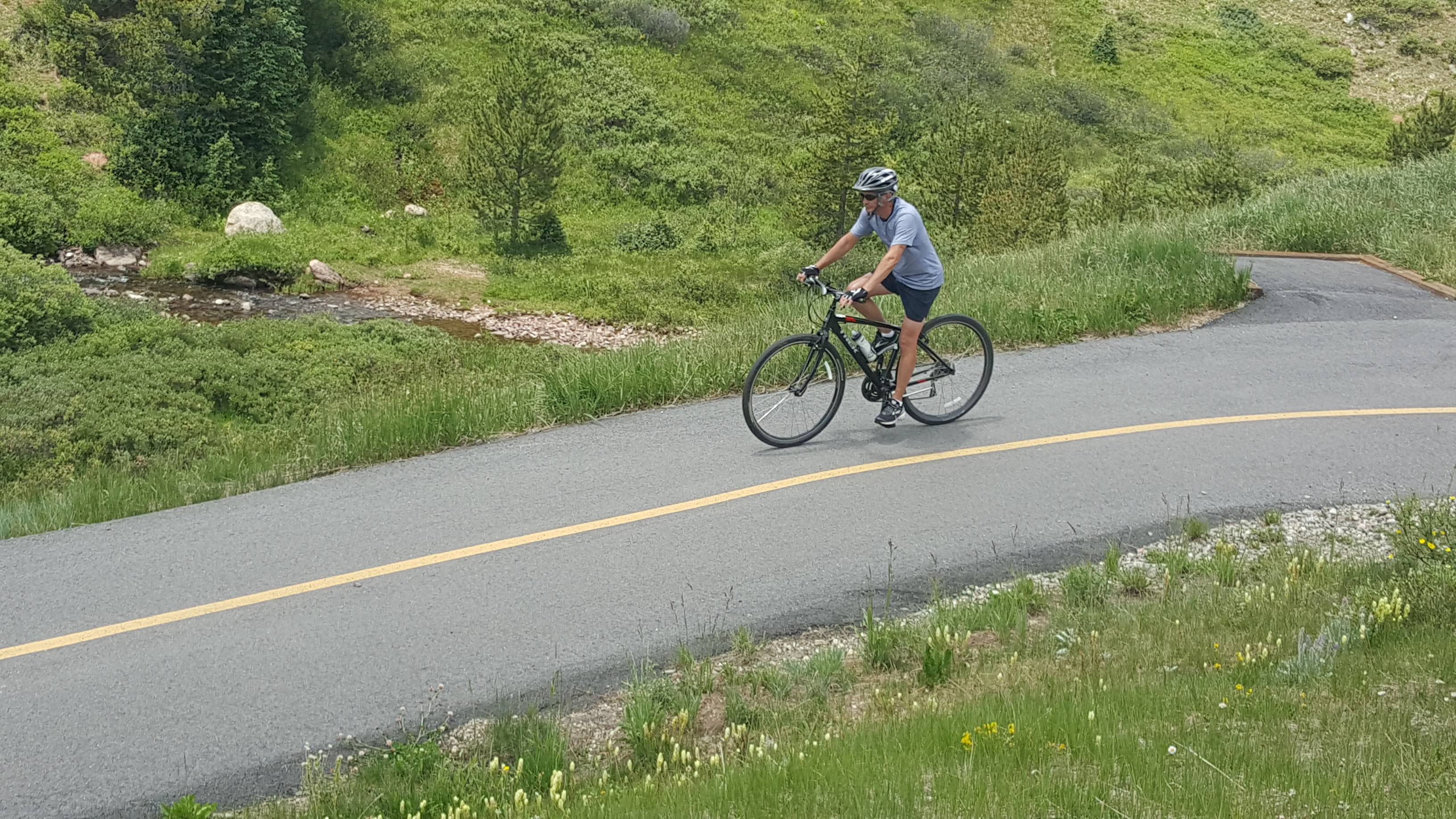 There is a fantastic network of paved recreational trails connecting the towns of Summit County. On any given day a cyclist can ride the smooth blacktop between Dillon, Silverthorne, Frisco, Breckenridge and Keystone. I ride a narrow tire road bike and the pathway is perfect for me. I know that others who love single-track mountain biking can find plenty of opportunities for riding nearby, but that’s just not my thing.