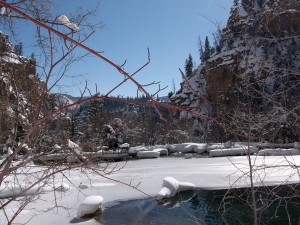Go take a hike. A 50 minute drive west on I-70 will take you to the beautiful Glenwood Canyon where you can find the Hanging Lake trail head. The trail is 1.2 miles in length and ascends steeply about 1,100 feet. It’s a narrow and snow covered climb to one of the most beautiful places in Colorado. Take extra care on the last 100 yards as the trail rises precipitously just before arriving at Hanging Lake. Be sure to hike the last ascent above the lake itself to Spouting Rock. The falling waters there create a huge glacier-blue ice cone. Come prepared for this hike with solid hiking boots, a hiking stick (a ski pole works well), water, snacks and some friends. Arriving at the trail head around 11am will give you plenty of time for this activity. Don’t forget your camera.