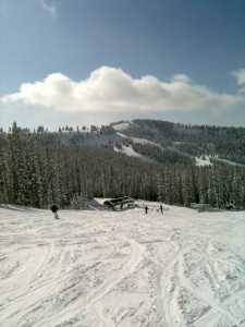 To people who have never been to Vail or in particular Blue Sky Basin, I advise them – start early and pack a lunch. Seriously, when you organize a ski trip of your guy friends, food is a topic of extreme importance. A high protein and high carbohydrate breakfast had been cooked by Tim this morning and inhaled by the rest of us. In the high country ,exercise and elevation force frequent refueling and rehydration. We were ready for lunch shortly after noon. Oddly deformed turkey and cheese sandwiches, bags of trail mix, and other high energy food were extracted from our pockets and packs inside the tiny cabin called Belle’s Camp. Packed like herring with other skiers, we ate our lunches and chatted up Colorado locals and visitors from around the globe as we ate. Good natured camaraderie and a like-minded synchronicity make these close quarters the perfect spot for a sojourned luncheon. After lunch we made more runs in Blue Sky including runs in Pete’s Bowl like The Grand Review, Star, and Hornsilver. They were running soft and smooth and the lightly falling snow allowed us to make fresh tracks all day long. In good conscience I could not give Vail the credit for the amazing conditions on this day, that credit goes to the Almighty alone. In a correlated reflection, perhaps the Almighty has a special interest in ski conditions at Vail. Who’s to say?