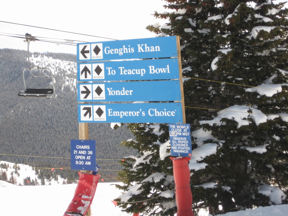 The sky was a mottle of steely gray and watery turquoise by the time we reached Belle’s Camp at the top of Blue Sky Basin. The Skyline Express lift had brought us here, as the last leg of a wandering trek which began on Vail’s famous Eagle Bahn gondola in Lionshead village. I had prepared all year for this trip to Vail and was anxious to set my skis on the white firmament of this snowy paradise. Our day had started early, rising at first light with hopeful expectations for favorable weather. While there is nothing certain or constant about the weather when skiing in Colorado we had our fingers crossed eager for a clear day. When I made my plans for this week I had explicitly put in my order for snowy evenings and sunny blue-sky days. Perhaps it was the time zone difference or just poor communications, but when I was on the mountain it was clearly overcast and snowing. With my goggles donned, hat pulled tight, and fleece neck gator pulled up, I was prepared for any weather.